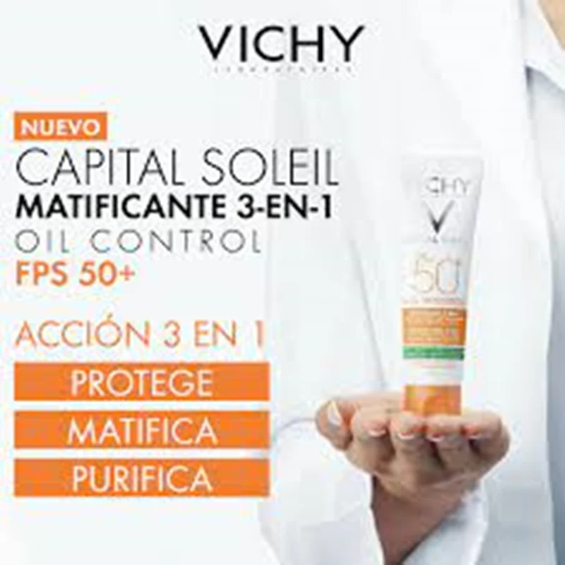 ضد آفتاب 3 در 1 ویشی حفاظت بسیار قوی برای مراقبت در برابر تابش اشعه های مضر دارد. ضد آفتاب ویشی فاقد چربی است و بعد از استفاده احساس سنگینی روی پوست نخواهید کرد. شکل نهایی آن روی پوست کاملا مات و ابریشمی است و اصلا هیچ حس خیسی به پوست نمیدهد و کاملا رنگ پوست را یکدست و زیبا میکند و همچنین خاصیت ضد آلودگی برای پوست دارد وبرای پوستهای مختلط و چرب بی نظیر و ایده آل است. با مواد فعال موجود در ضد آفتاب ویشی می توانید کک و مک و تیرگی های سطح پوست را محو کنید و از به وجود آمدن مجدد آن جلوگیری کنید.